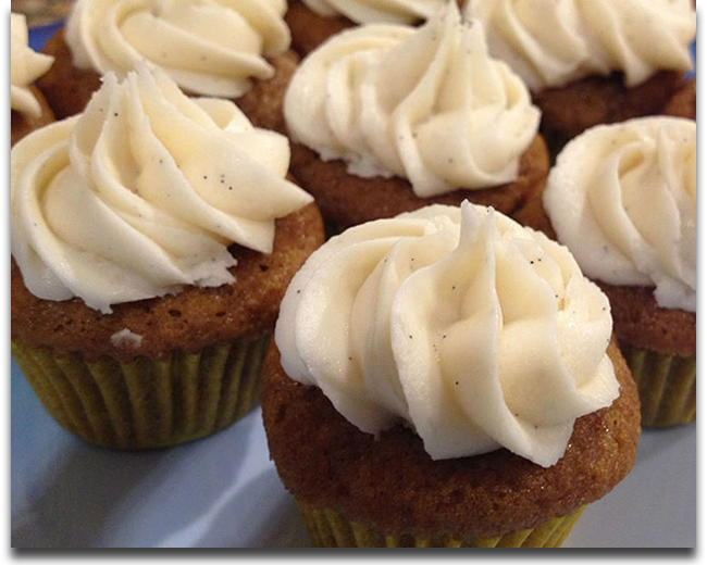 Delicious bite-sized fall cupcakes with swirls of vanilla-bean buttercream frosting